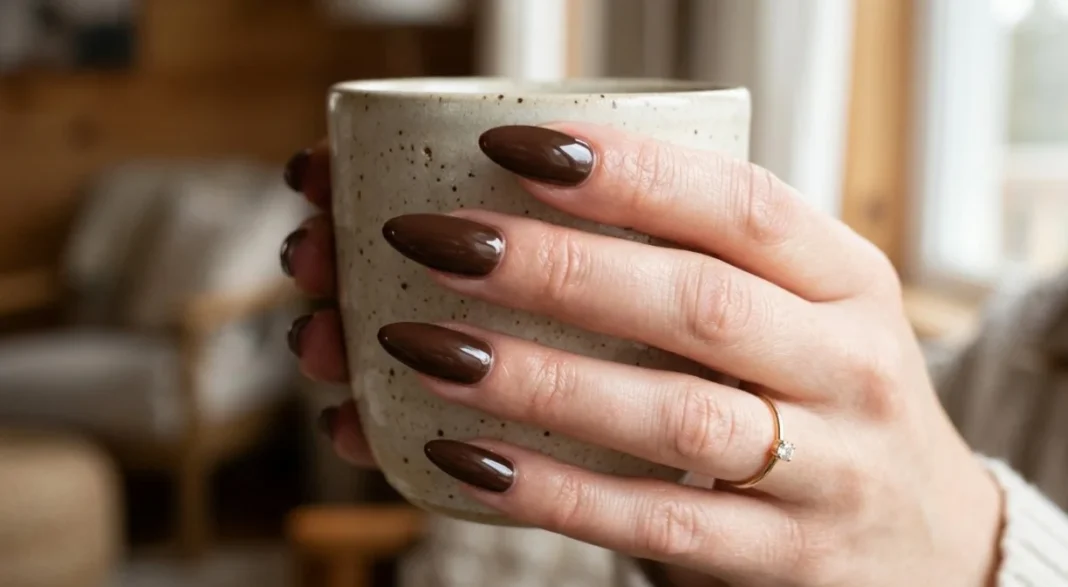 O marrom café ganhou espaço nos últimos anos ao migrar das paletas de maquiagem para as manicures. Por ser um tom escuro e terroso, ele remete imediatamente a solidez e responsabilidade, além de combinar com qualquer guarda-roupa corporativo. Diferente do preto — muitas vezes associado a rigidez extrema — o marrom café suaviza a mensagem, mas não perde o ar de autoridade.