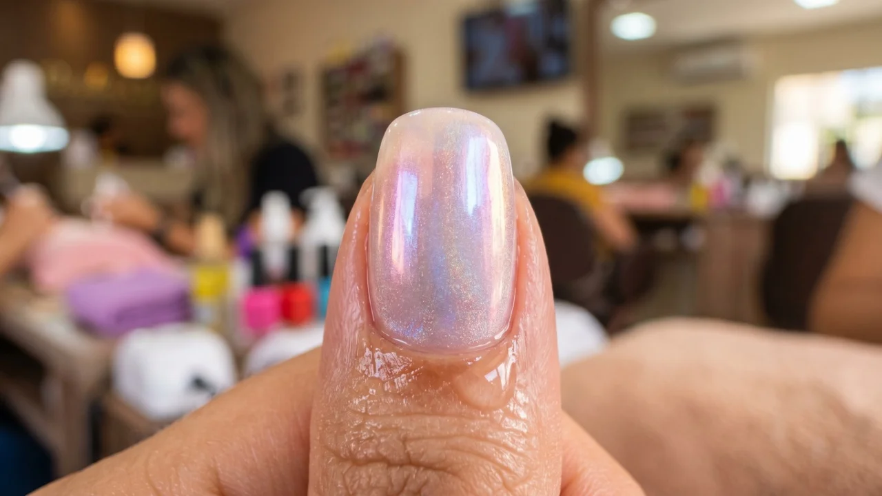 Esse efeito deixa a unha com aspecto refinado e combina especialmente com tons claros e neutros.