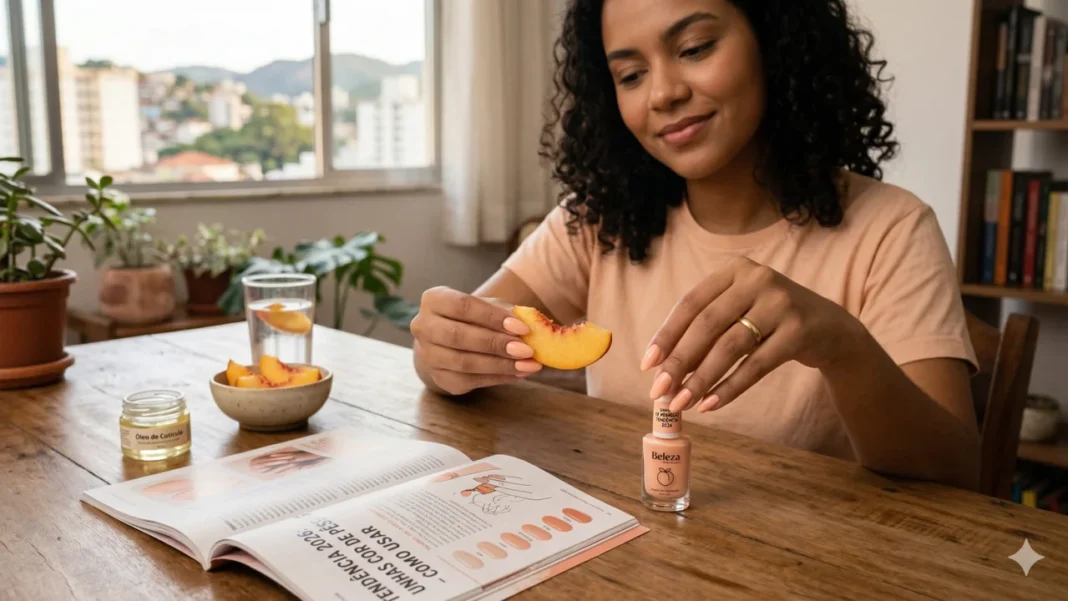 Quem deseja apostar no visual pode iniciar com esmaltes cremosos tradicionais. Basta uma preparação básica: lixar, remover cutículas, aplicar base fortalecedora e finalizar com duas camadas do pêssego escolhido. Para efeito de salão, vale selar com top coat de alto brilho.